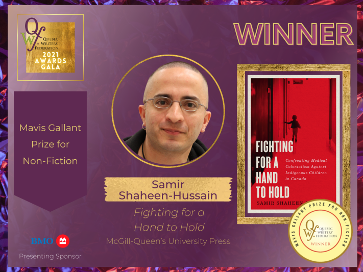 A deeply researched and critical study of Canada’s health care services for Indigenous children by Samir Shaheen-Hussain won two of the Quebec Writers’ Federation (QWF) annual 2021 literary awards.