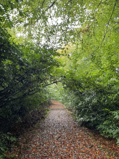 On my second-to-last day at the Centre, I went for a walk through the now-familiar woods and hedge-lined country lanes. It was raining, but I wanted to say goodbye. During the cheerful sit-down dinners that we gathered for each night, we would all tell each other stories about how our days had gone. “Rough, but hoping for better tomorrow.” Or, “Great, but tomorrow it may be hard again.” Some people talked about sensing unknown presences when they walked alone through the leafy avenues along the shores of the lake. At one point, one artist said they’d encountered a dog that kept baring its teeth. Was the dog safe to be around? Another artist put us all at ease: they had met the dog and its owner, and it turned out that the dog, so accustomed to being smiled at by humans, had learned to show its teeth as a friendly greeting. A doggy smile looks unfortunately like a toothy threat. Anyway, after that, I wanted to meet this emotionally sensitive animal. But though I walked for at least an hour or two every day, I never encountered it.