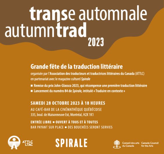 Join the Literary Translators Association of Canada (LTAC) on Saturday, October 28, 2023, at 6 pm for their Autumn Trad to celebrate a love of literary translation!