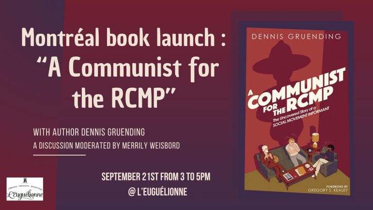 On September 21st, l’Euguélionne is welcoming author Dennis Gruending for a reading and Q&A about his new book A Communist for the RCMP. The discussion will be moderated by author Merrily Weisbord !