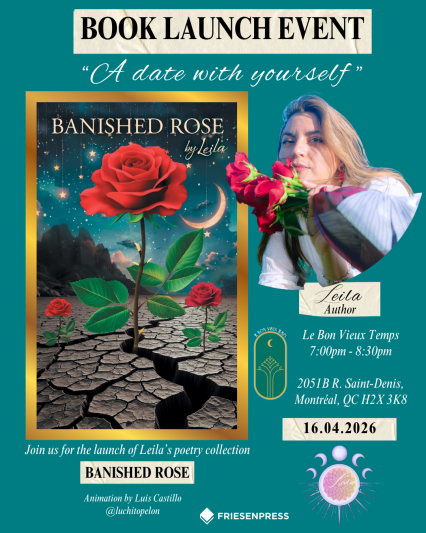 Join Montreal author Leila for the launch of her poetry collection Banished Rose.