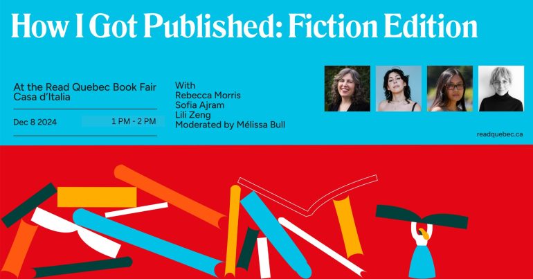 Looking for tips on getting your own writing into print? Writer/translator Mélissa Bull, editor of the QC Fiction imprint at Baraka Books, will moderate as panelists Rebecca Morris (Other Maps), Sofia Ajram (Coup de Grâce), and Lili Zeng (Dear Haider) recount their journeys to publication. There will be plenty of time for questions from the floor.