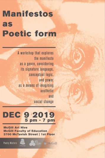 Please join McGill’s Institute for Human Development and Well-being (IHDW), in partnership with Poetry Matters, for a participatory art-making workshop on manifestos as a poetic form
