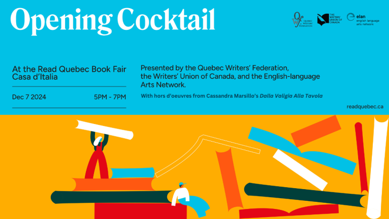 A very special edition of the Read Quebec Book Fair’s 5 à 7. Come have a drink at the end of an exciting day of book browsing and literary events. Meet public historian, artist and educator Cassandra Marsillo, author of Dalla valigia alla tavola, an oral history of Montreal immigrants from the Italian region of Molise, complete with 40 recipes – and enjoy Molisan antipasti created from the book’s recipes. This event is also a “Super Schmoozer” bringing together members of the Quebec Writers’ Federation, the Writers’ Union of Canada, Quebec chapter, and the English-language Arts Network. Chat about books, writing, and the delicious food! Everyone is welcome.