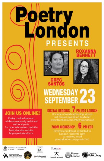 On Wednesday, September 23, Poetry London launches their 2020/2021 season with a digital reading event featuring Roxanna Bennett and Greg Santos.