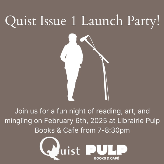 Quist, QWF’s online literary journal for youth, is celebrating the launch of its first issue! Join us for a fun night of reading, art, and mingling at Librairie Pulp Books & Cafe.