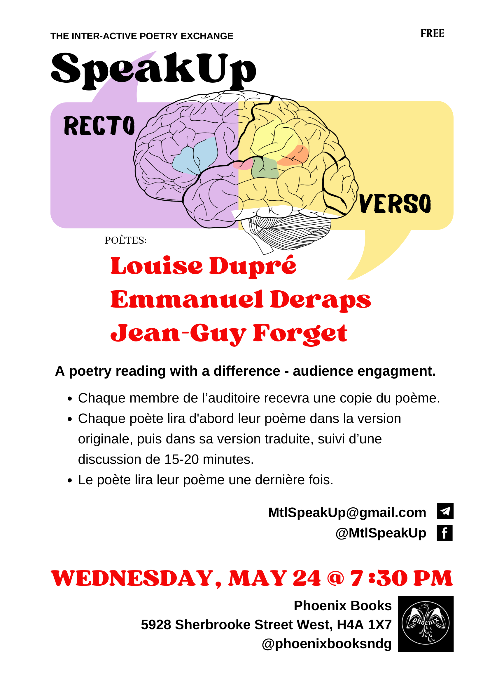 Join us at Phoenix Books in NDG (5928 Sherbrooke St W, Montreal, Quebec H4A 1X7)