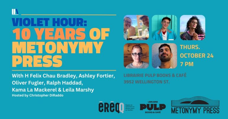 A partnership between Metonymy Press, Librairie Pulp Books & Cafe, The Équipe de recherche en études Queer au Québec and Violet Hour.