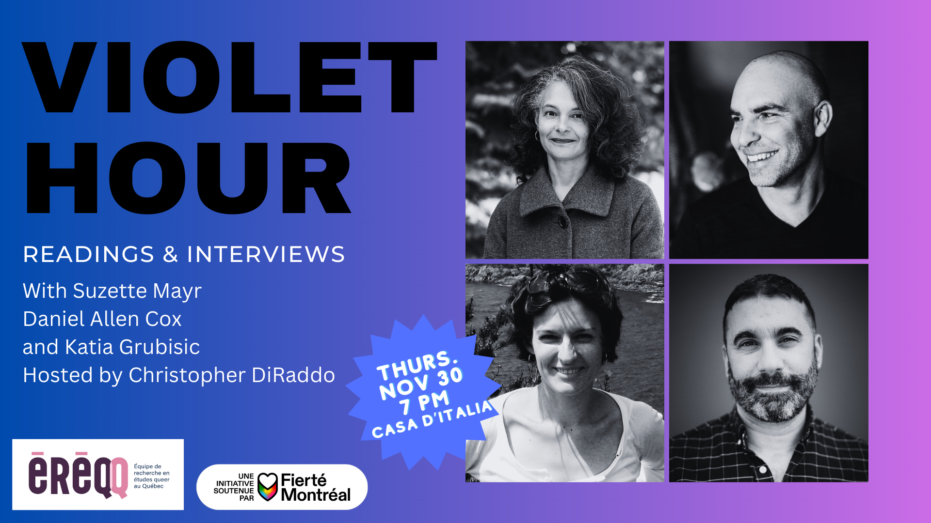 Violet Hour: Suzette Mayr, Daniel Allen Cox, Katia Grubisic