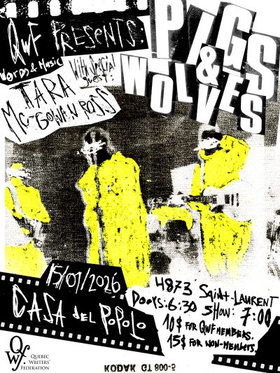 Part of the Quebec Writers’ Federation’s Words & Music series.