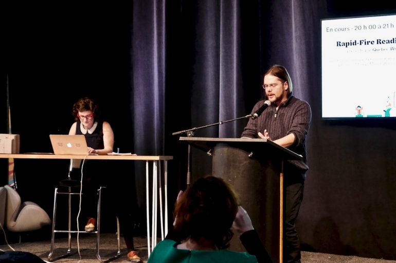 As part of AELAQ and QWF’s Get Lit!’ series at the Salon du livre de Montréal, on Wednesday, November 20, eighteen of the province’s hottest writers and spoken word performers got fast!