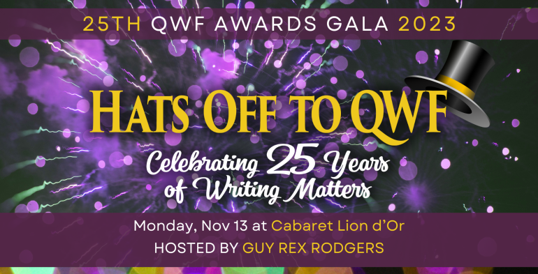 This year marks the 25th anniversary of QWF and the QWF Literary Awards, a milestone commemorated by QWF’s ongoing campaign called Writing Matters, highlighting writers’ contributions to not only our culture but also our economy.