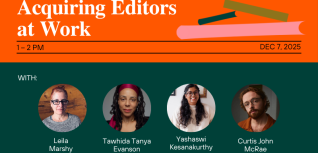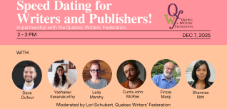 Who gets to choose which books will be published – and how do they do it? Editors from three publishers will discuss how they decide what to publish, and how writers can improve their chances. Simon & Schuster children’s book editor Yashaswi Kesanakurthy, Baraka Books’ fiction and nonfiction editor Leila Marshy, and Curtis McRae, fiction editor at Véhicule Press, will give us the inside scoop on what acquisitions editors really do.