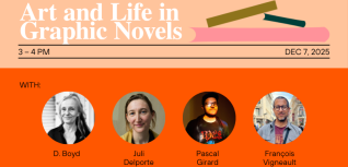 Three of Quebec’s most distinctive voices in contemporary comics come together to explore the intimate connections between art and autobiography. Juli Delporte (Portrait of a Body), D. Boyd (Denniveniquity), and Pascal Girard (Pastimes) draw from personal experience to craft stories that are tender, funny, and deeply human. Join them for a conversation about turning life into art, the creative risks of vulnerability, and the evolving landscape of autobiographical graphic novels. Moderated by François Vigneault.