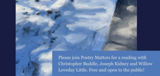 Join Poetry Matters for “Scenes of Attunement,” a poetry reading featuring Christopher Buddle, Joseph Kidney, and Willow Loveday Little.