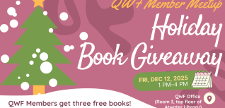 We’re hosting a book giveaway at the QWF office! Light refreshments will be available, and QWF members can take up to three free books.