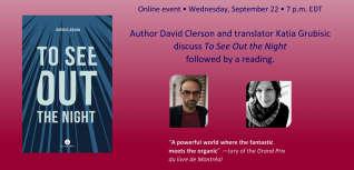 QC Fiction Launches “To See Out the Night,” Written by David Clerson & Translated by Katia Grubisic