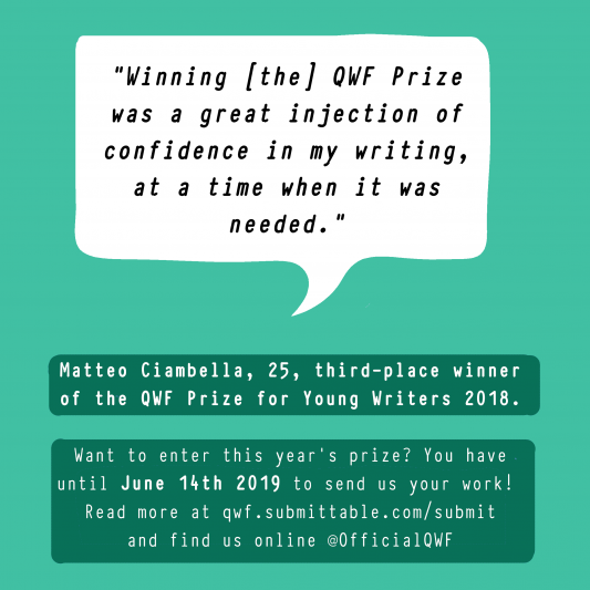This is the first in a series of short interviews with some of the previous winners of the QWF Prize for Young Writers. To find out more about the 2019 QWF Prize for Young Writers, including how to apply, see our Submittable page. The deadline is Friday, June 14, 2019!