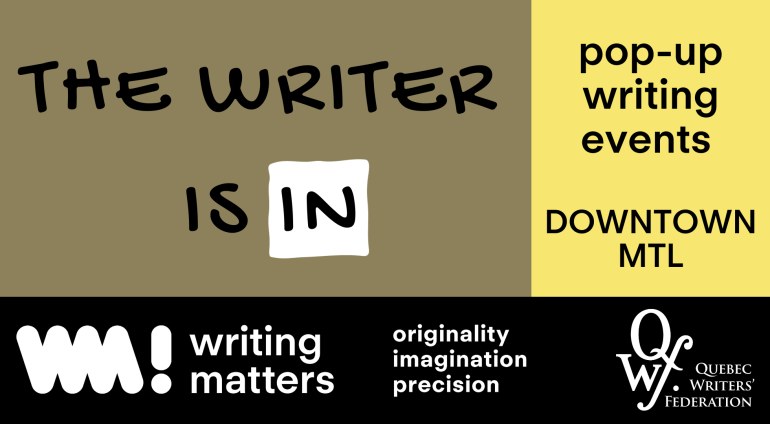 Join us for The Writer Is In, a free series of pop-up writing events we’ll be holding in and around downtown Montreal in October and November.