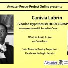 Join the Atwater Poetry Project Online! Canisia Lubrin will be reading from her latest … More info Read more